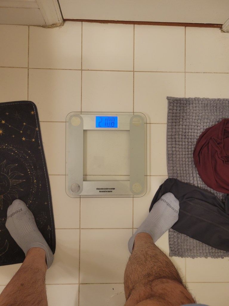 Not doing super great right now. Which is okay. Celebrating victory is easy. Recognizing failures without turning them into shame events but rather information to adjust to is hard. This is also why I need to weigh myself daily. I know there are plenty of people out there that swear against that but in my experience, it just works as a feedback system on my behavior with respect to diet and movement. Every time I’ve gone long periods without, I inevitably gain a lot of weight.