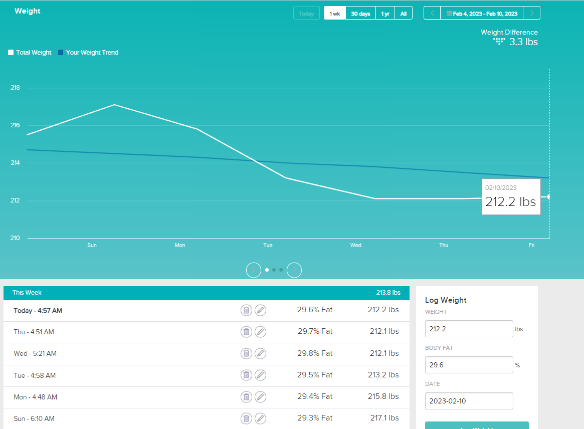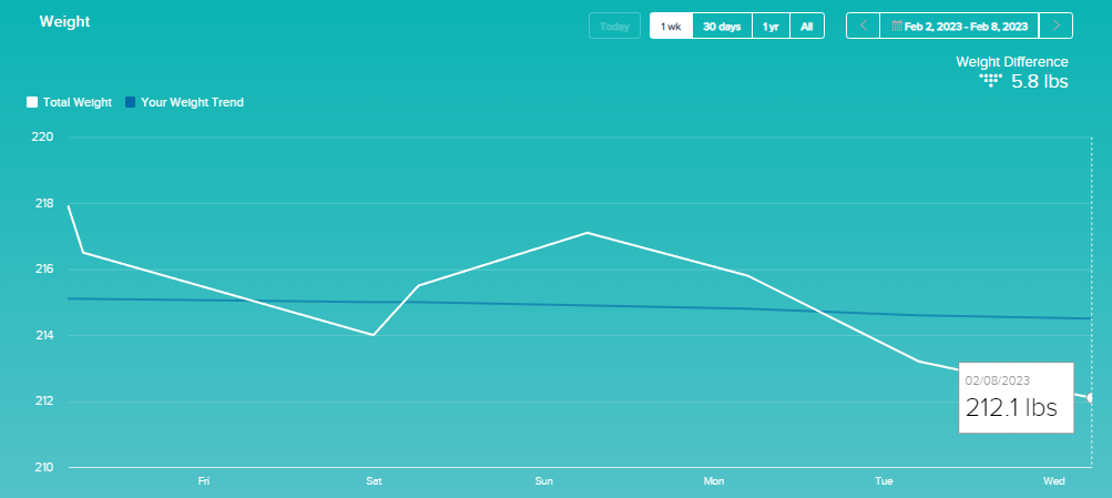 I was super busy and wasn’t able to get my log in yesterday morning so I’ll double up today. The important bit is I didn’t do great on the diet yesterday. I had 3 of those protein cookies that make me fart like the devil made me do it and a cauliflower pizza half The calories weren’t overall that bad but the problem was I didn’t stick to the plan and say “no” like I’ve been trying to focus on. I’ll have another chance to succeed today. Also the fact that my weight stayed the same despite that means had I stuck to the plan, I most likely would have closed on getting under 210. Just gotta keep at it.