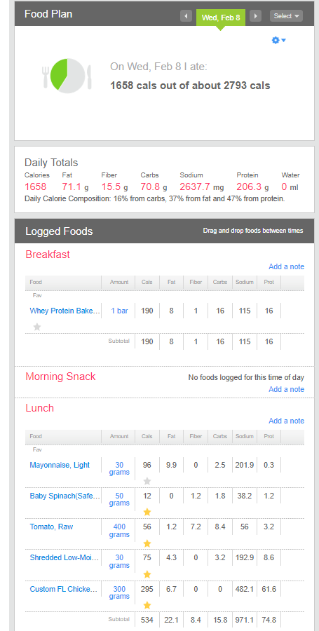 Here is today’s plan. Hopefully I can stick to it. Yes it is on the low side, but obviously I have a good amount of fat I can tap into. When I get leaner I’m going to, somewhat counterintuitively, eat a bit more.